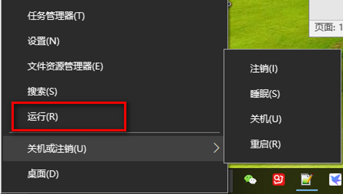 2、再导航栏开始菜单处点击右键,选择运行选项。