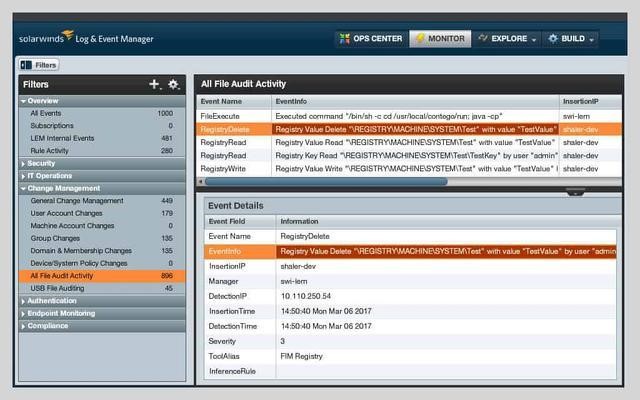 SolarWinds Log&Event Manager是Windows的日志分析工具,可提供集中的日志监控体验。该平台提供事件时间检测,帮助用户快速检测问题所在。由SolarWinds Log&Event Manager处理的数据在传输过程中会进行加密,未经授权无法读取。