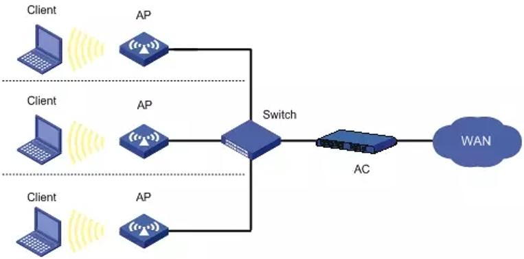 瘦AP,形象的理解就是把胖AP瘦身,去掉路由、DNS、DHCP服务器等诸多加载的功能,仅保留无线接入的部分。我们常说的AP就是指这类瘦AP,它相当于无线交换机或者集线器,仅提供一个有线/无线信号转换和无线信号接收/发射的功能。瘦AP作为无线局域网的一个部件,是不能独立工作的,必须配合AC的管理才能成为一个完整的系统。